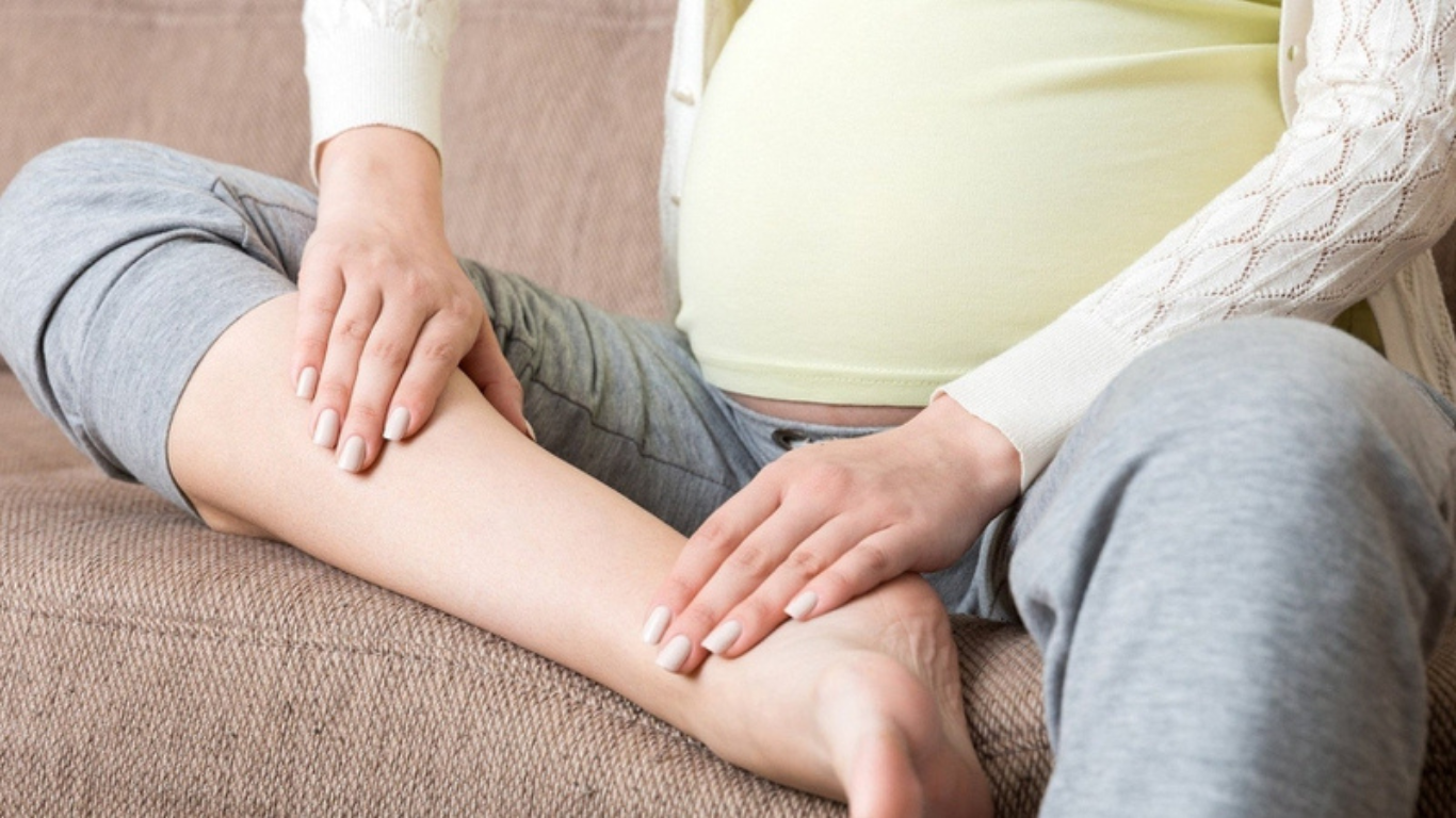 Ở giai đoạn cuối thai kỳ, khi thai nhi phát triển lớn, tử cung mở rộng và lượng nước ối tăng lên, áp lực sẽ đè lên tĩnh mạch chủ dưới. Sự chèn ép này làm máu khó lưu thông ngược lên tim, khiến máu và dịch bị ứ đọng ở chân, gây ra tình trạng xuống máu chân ở bà bầu.